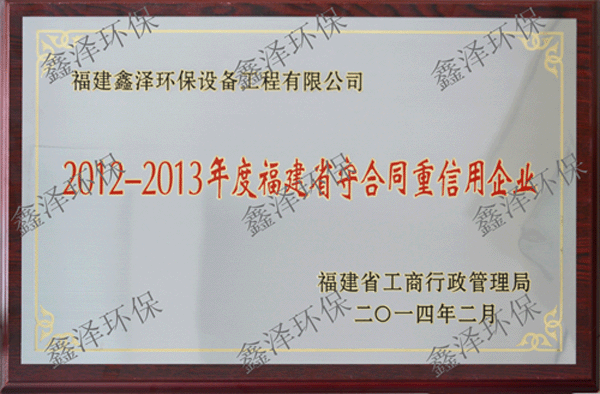 2012-2013年度福建守合同重信用企业牌匾