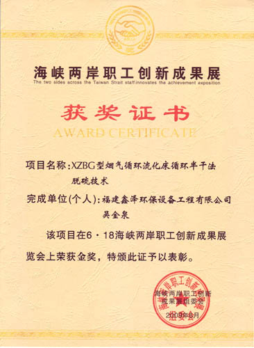 海峡两岸职工创新成果展金奖(烟气循环流化床半干法)