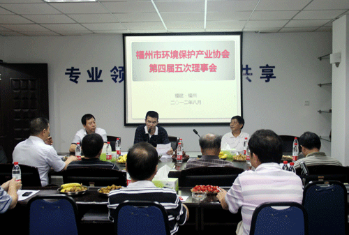 8月24日下午,福州市环境保护产业协会第四届五次理事会会议在我公司会议室召开。协会荣誉会长辛承安、柯发祥莅会。福州市环保局赵炳荣副局长、自保处包定贞处长和张俊德同志、福州市民政局行政审批处邹坚民处长等莅会指导。出席会议的还有理事、理事代表、民生银行工作人员等共二十余人。 会议由丁少忠会长主持,首先由民生银行闽侯支行行助介绍民生银行最新推出的无抵押和担保的共同融资新模式——小微企业城市商业合作社,引起与会各位企业家的兴趣。紧接着理事之间展开交流与座谈。 本次会议进一步促进了各单位会员间的学习交流,也有助于了解国家环保科技创新的新政策,对推动环保产业发展很有帮助。有关领导希望各单位会员之间开展“产学研”协作,突破关键技术;整合单位会员优势,组成专项综合服务联盟,推动环境服务业发展。