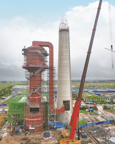 打造卓越企业,构建百年鑫泽--日照华泰脱硫湿电主塔顺利封顶