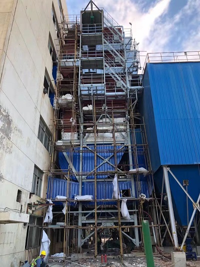 由我公司承建的福建佳通轮胎有限公司链条锅炉超低排放系统工程,得到业主的大力支持,在公司领导和各部门、施工单位团结协作下,在停炉近三个月的时间内,完成4#炉系统原水膜除尘塔拆除、布袋除尘器平移、脱硫塔及其平台梯子和进出口烟道制作安装、原锅炉本体省煤器拆除和新省煤器安装、脱硝钢架和反应器及其平台梯子和进出口烟道制作安装、除尘进出口烟道制作安装、脱硫系统防腐、设备安装、管道安装、电气和仪控系统施工安装等等。